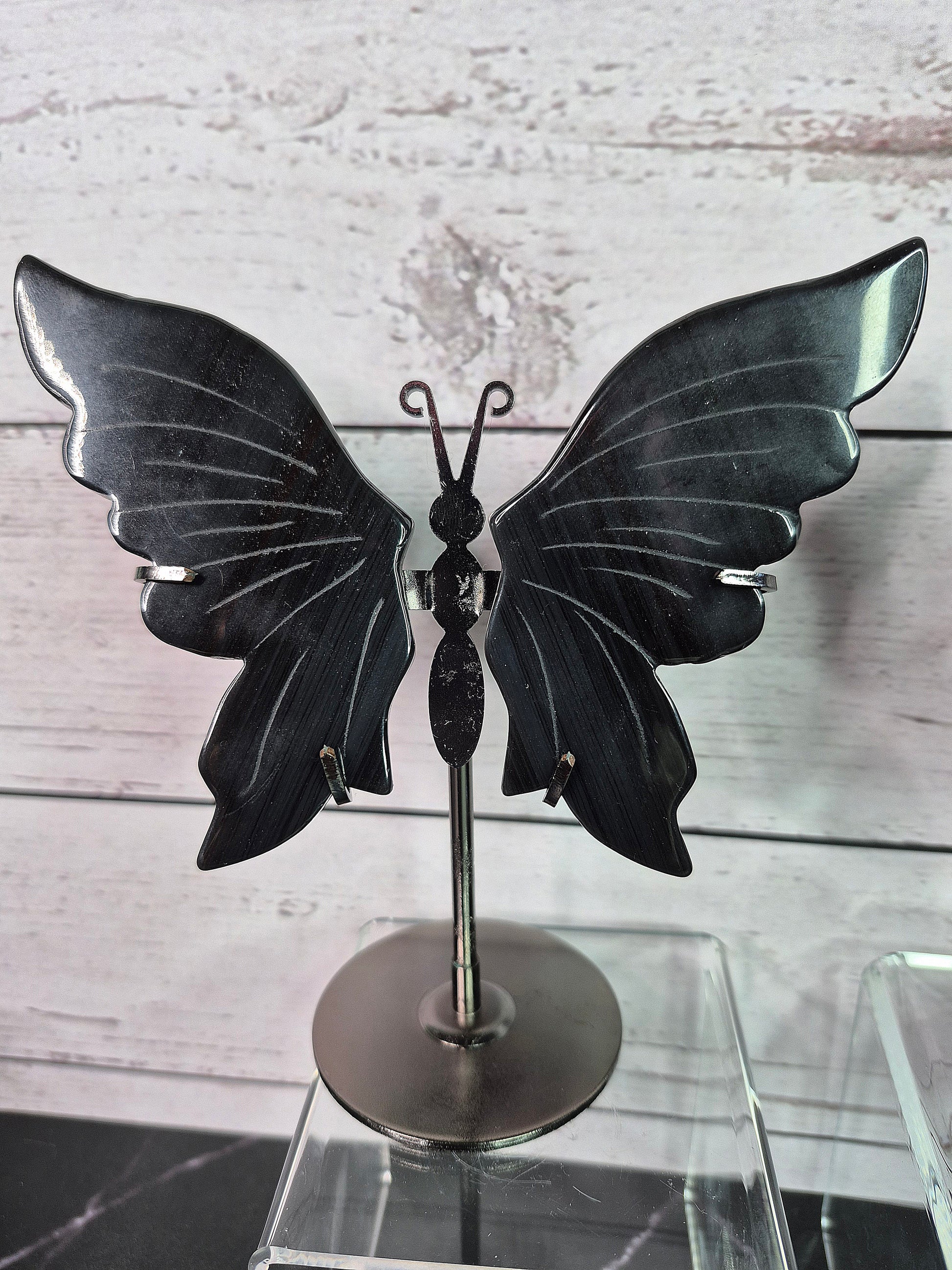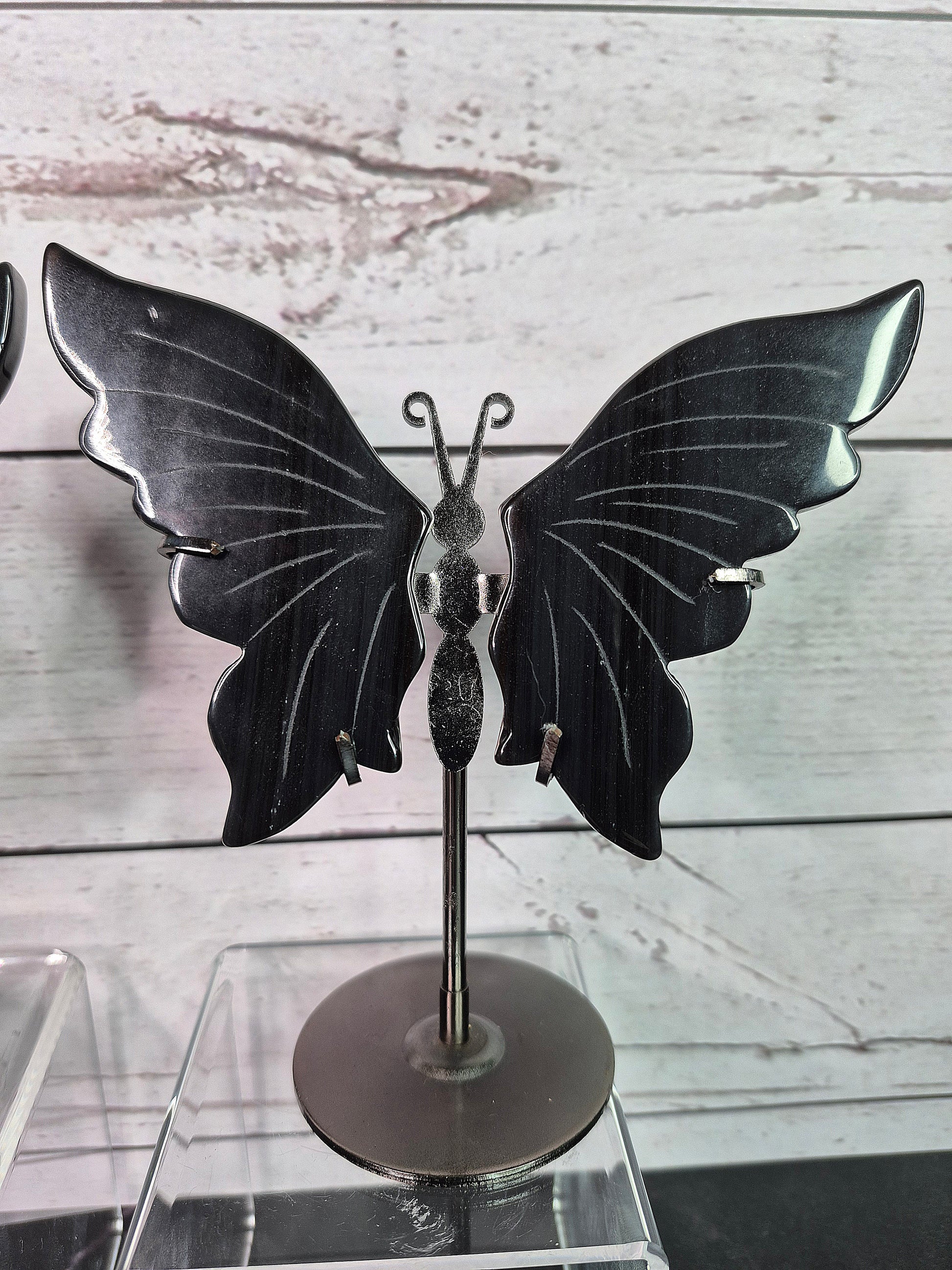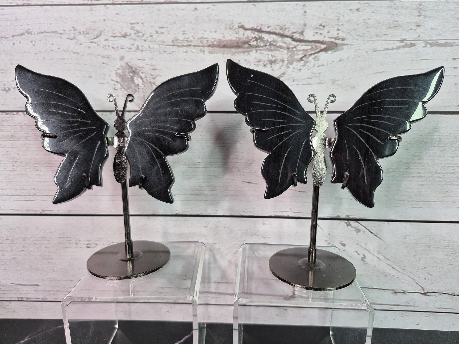 Silver Sheen Obsidian Butterfly Wings on Stands