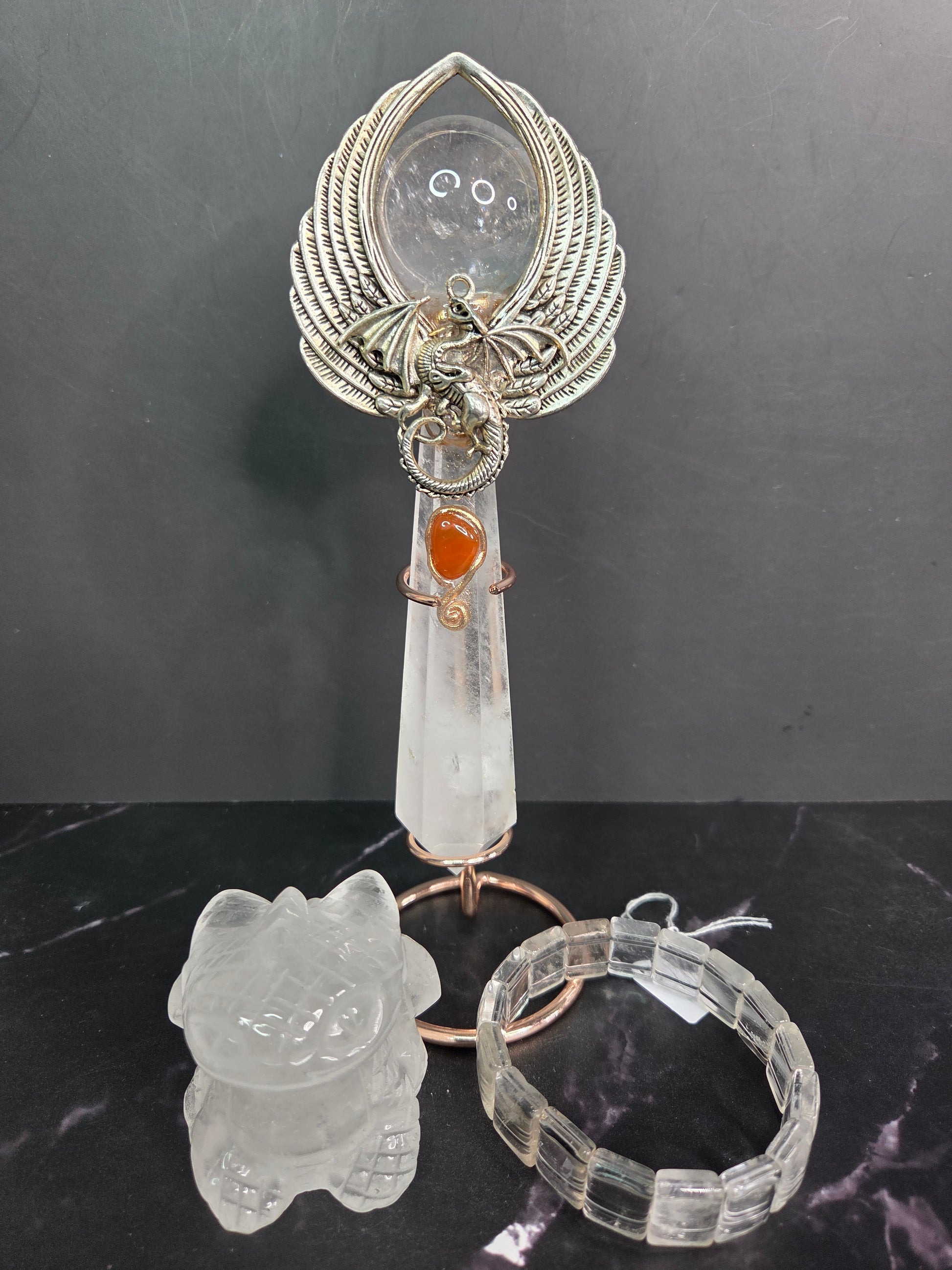 1 Dragon Clear Quartz Wand w/stand