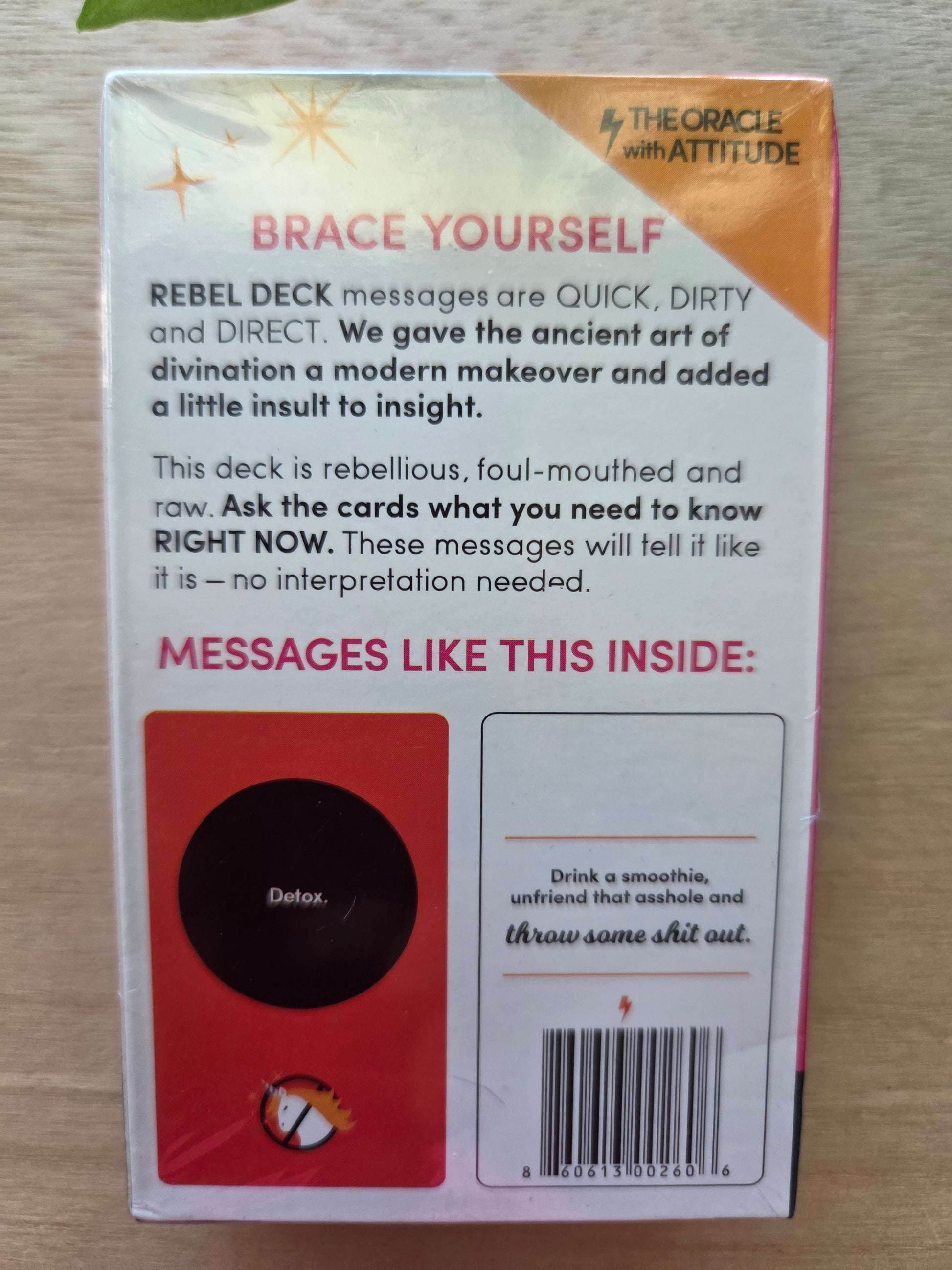 Unleash your bold side with the Rebel Deck, the oracle that doesn’t hold back. Packed with attitude and sharp insights, this deck delivers playful, no-nonsense guidance to keep you inspired and empowered. Perfect for those who like their wisdom with a twist, it helps you tackle life’s questions with confidence and a wink.