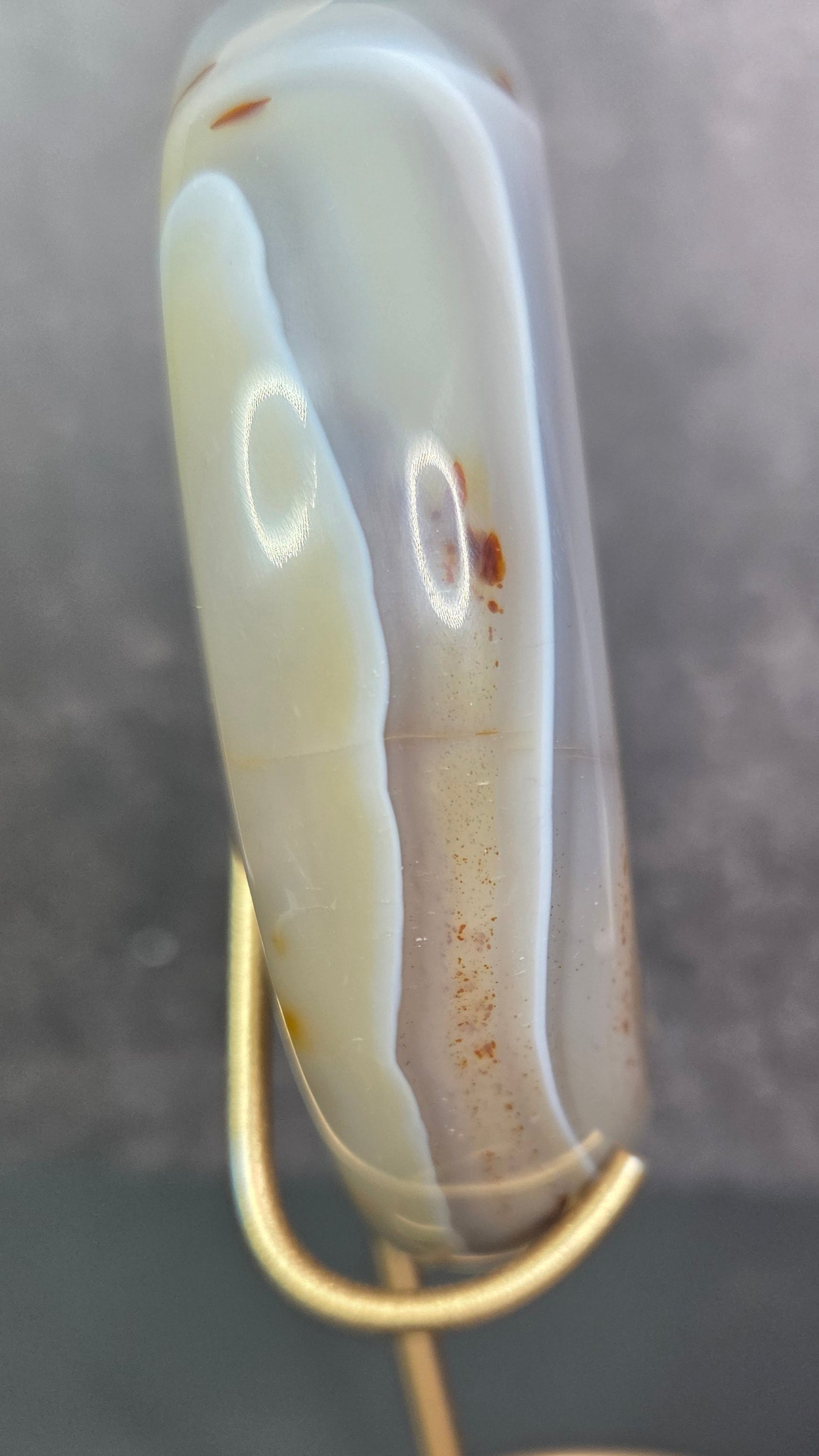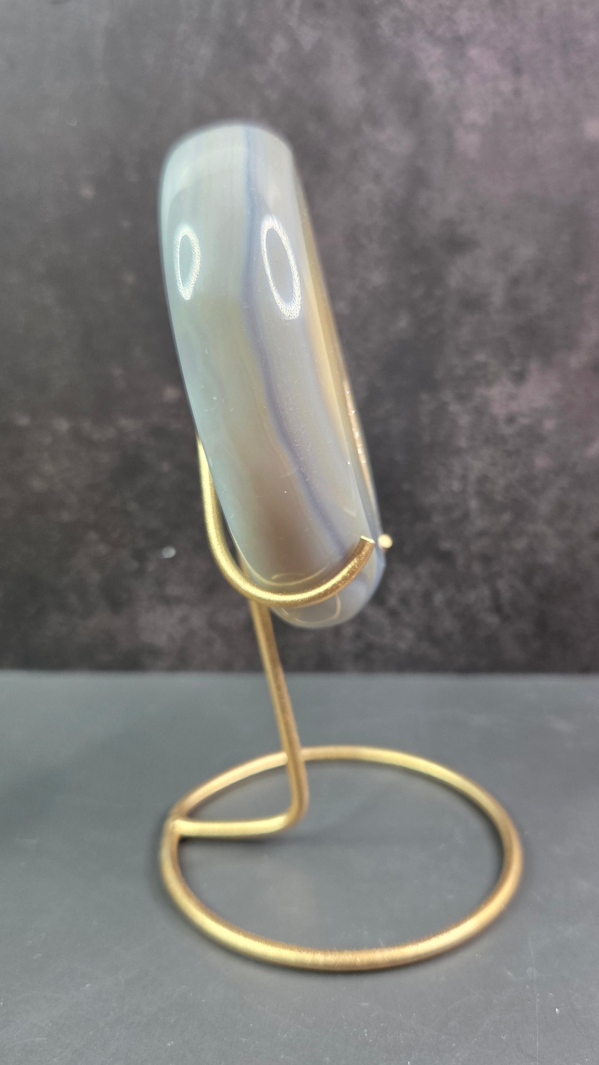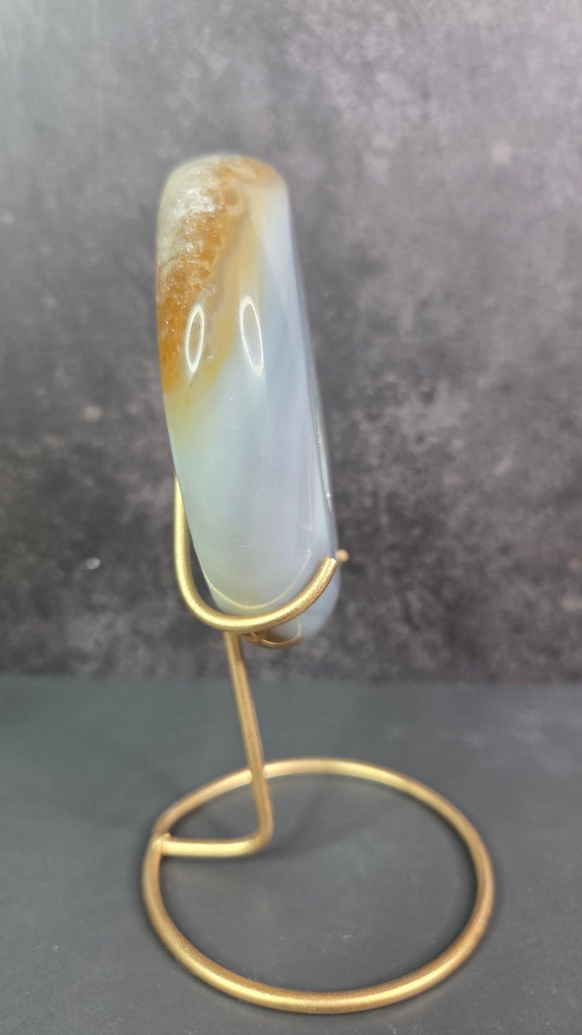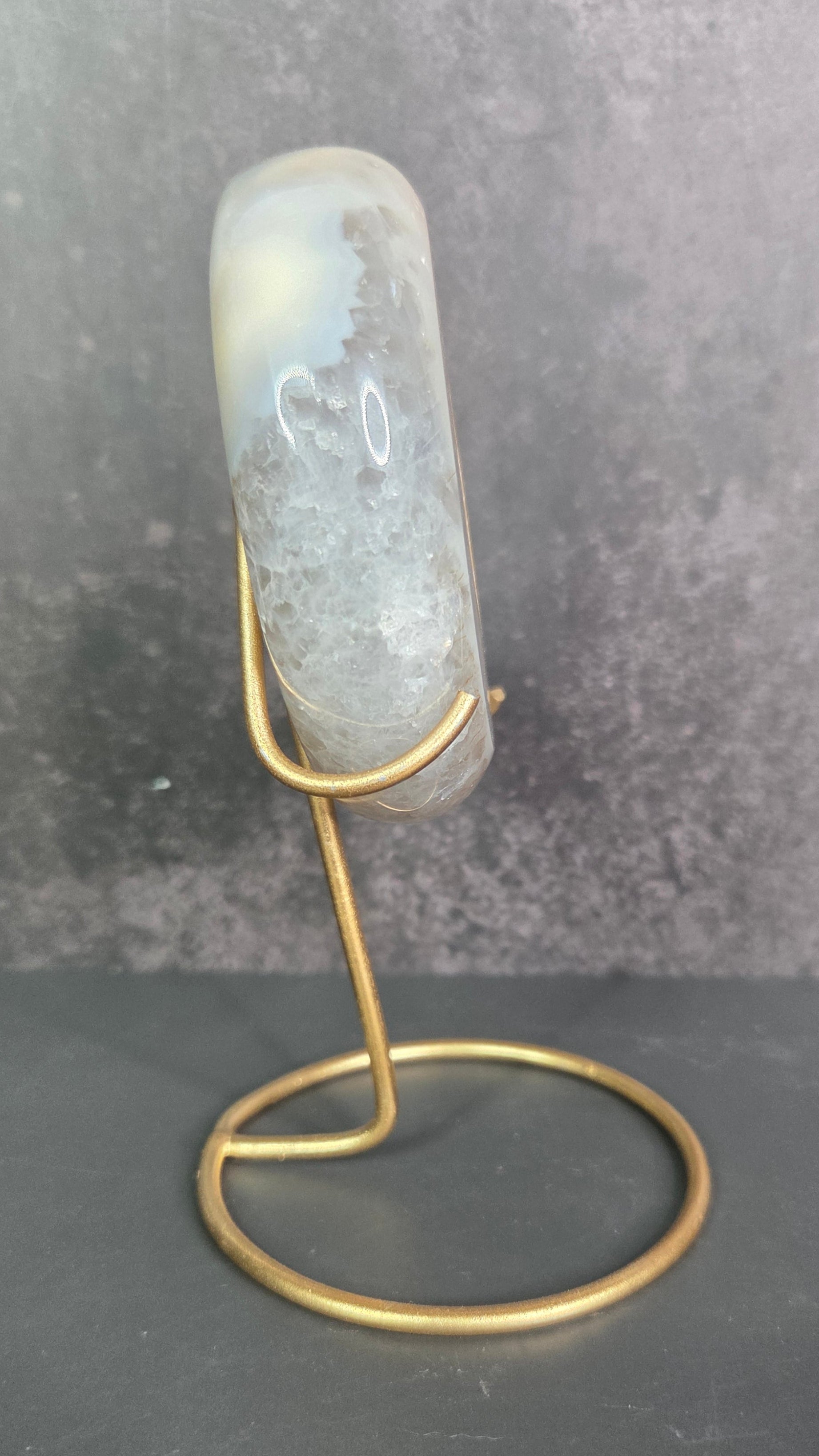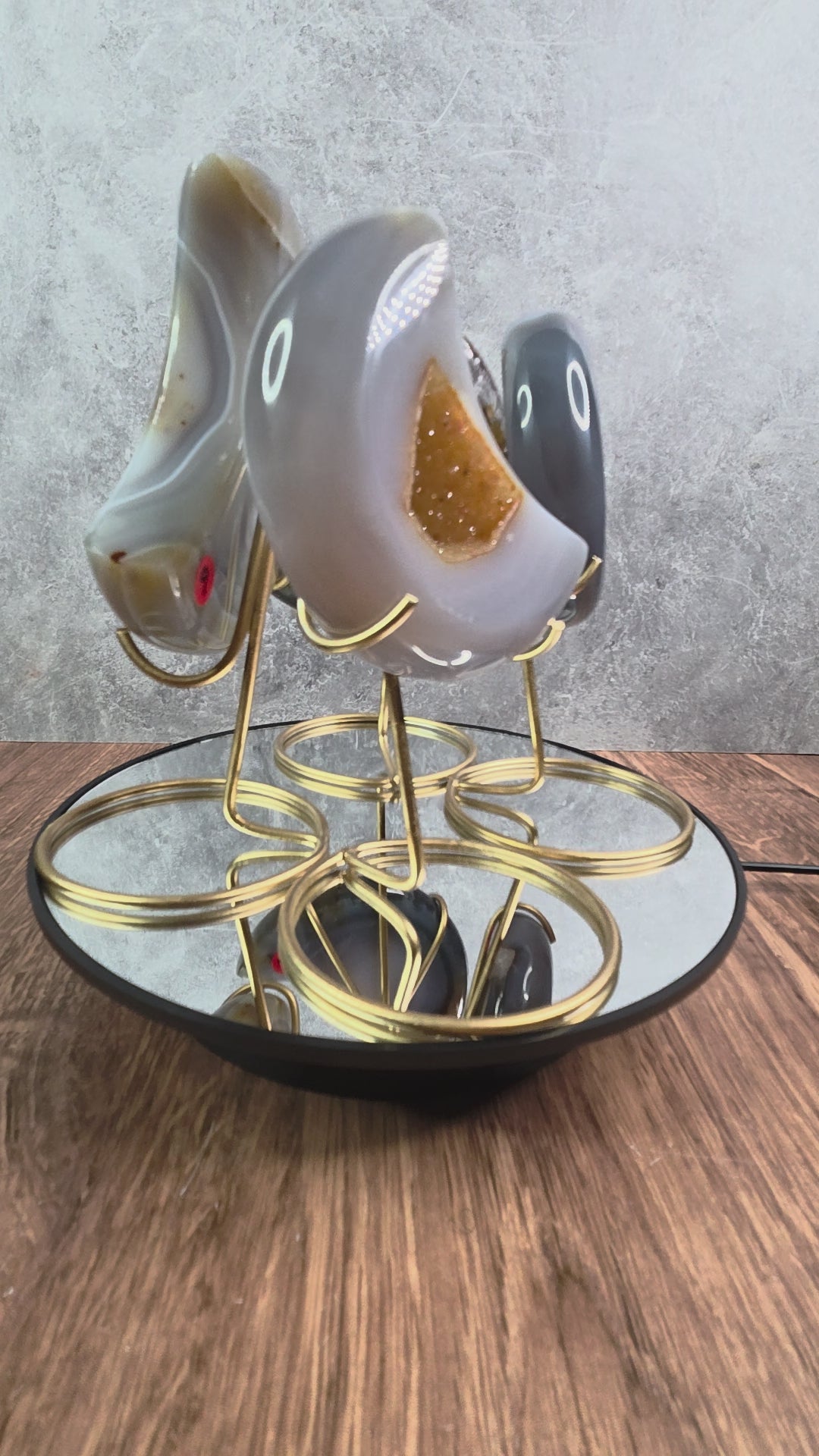 Delight in stunning agate crescent moons featuring dazzling druzy centers, elegantly mounted on gold stands that stay securely in place. Each piece sparkles with natural charm, blending earthy tones with a touch of cosmic magic. Perfect for adding a whimsical touch to any space, these moons invite you to dream big while enjoying their sturdy and stylish display. Whether as a unique gift or a playful addition to your collection, these agate moons bring a little sparkle and wonder wherever they shine.