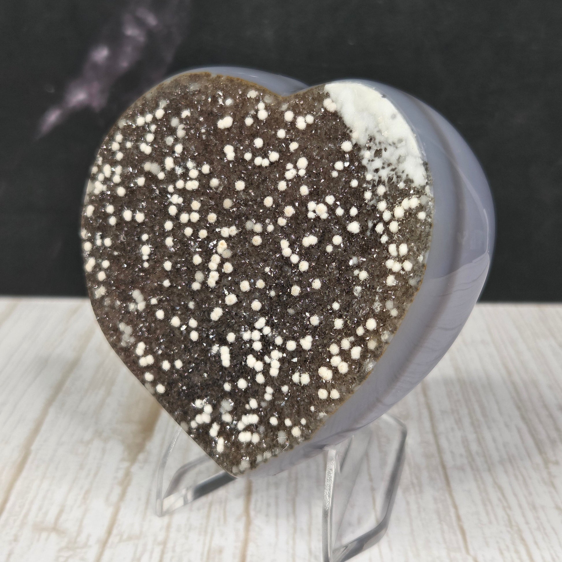 Glittering Dark Druzy Agate Heart with Quartz Accents