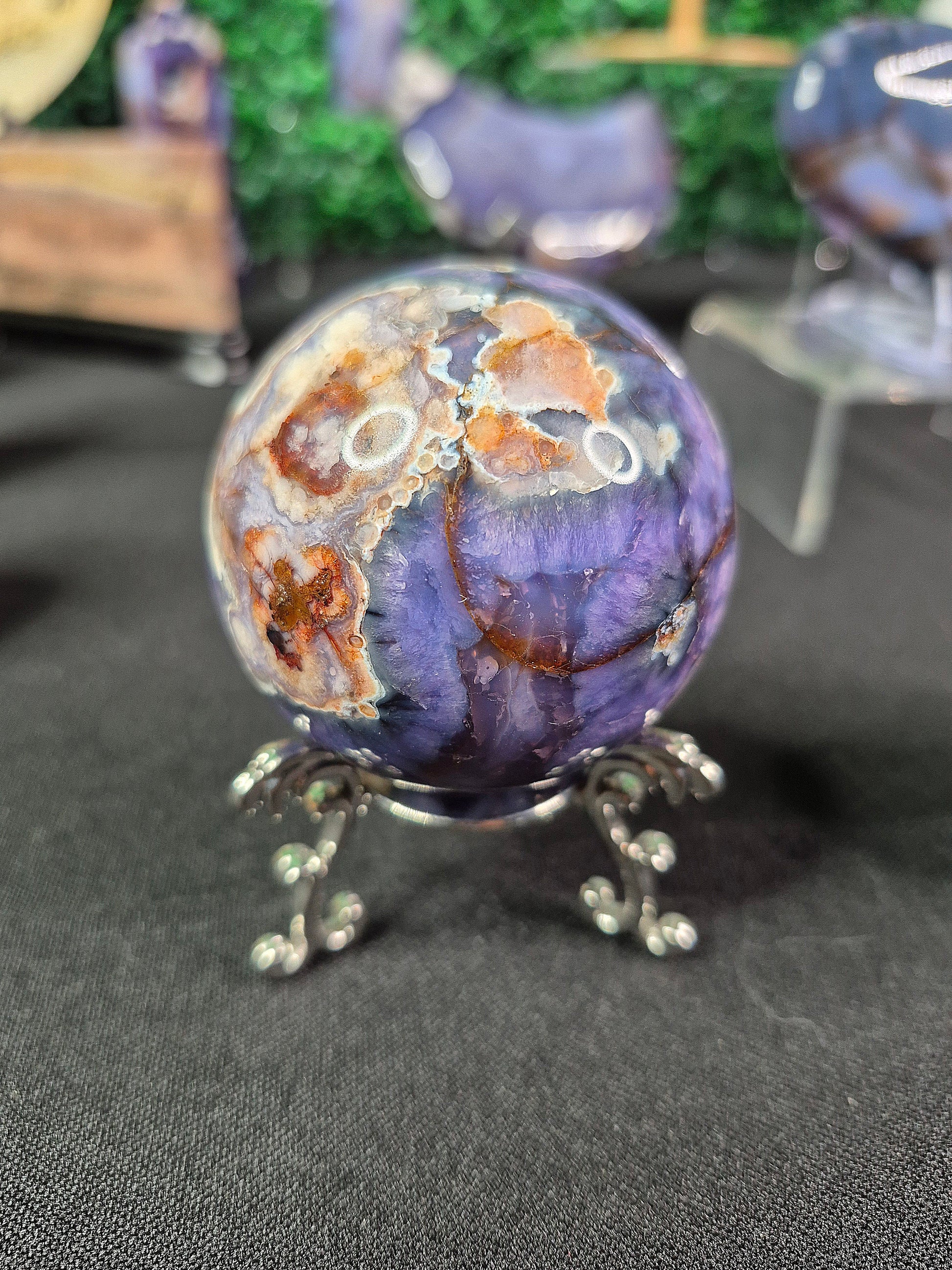 Blue Flower Agate shines with a calming blue color and blooms that symbolize new ideas and fresh starts. Its pattern feels like a garden, reminding you that growth needs care and space. The blue also supports clear communication and trust, mixing heart and throat chakra energy in a playful way.