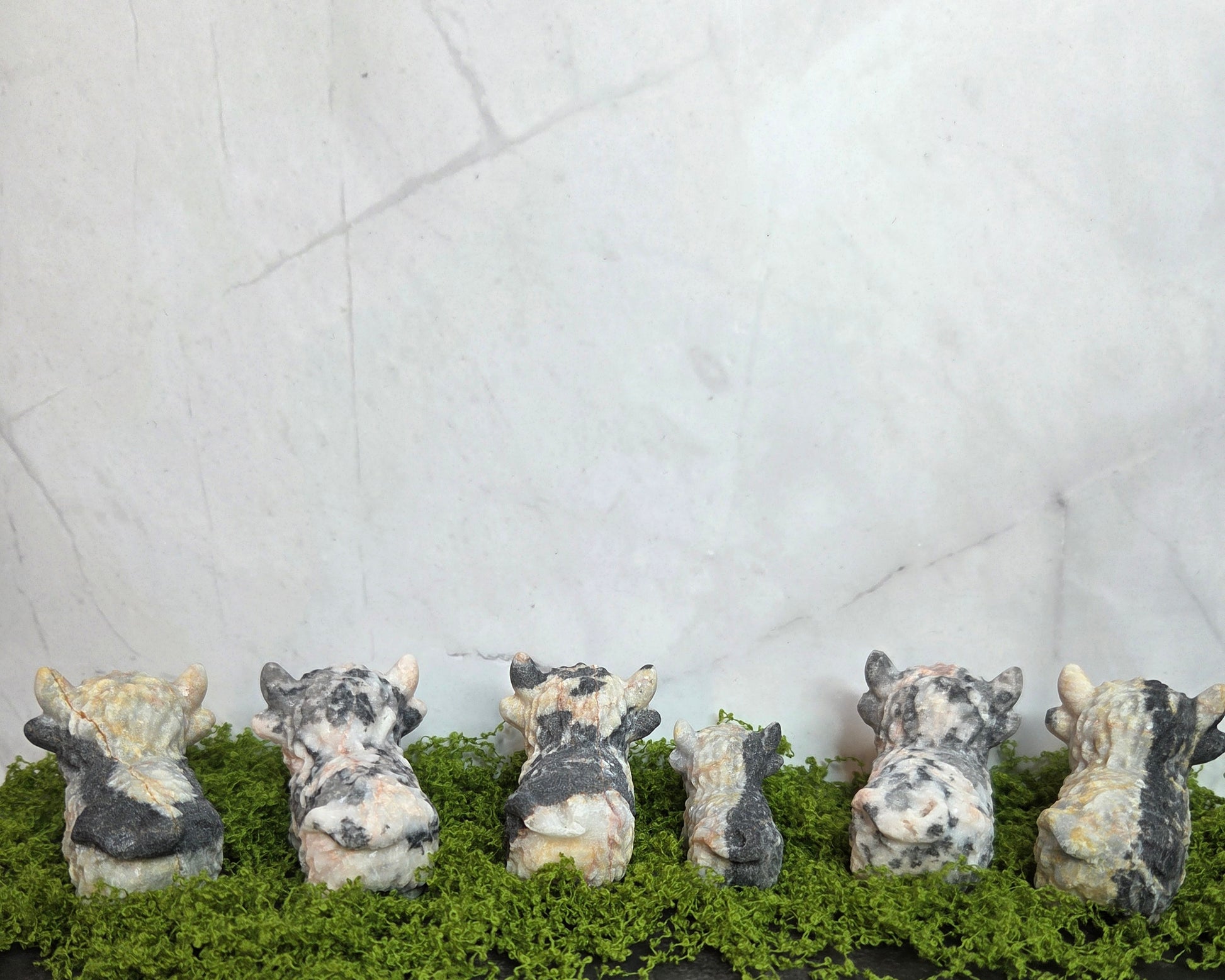 Cute Jasper Highland Cow Carvings that add quirky charm to any room. Hand-carved from natural jasper stone with unique color variations. Perfect for animal lovers and collectors who want a fun, conversation-starting décor piece.