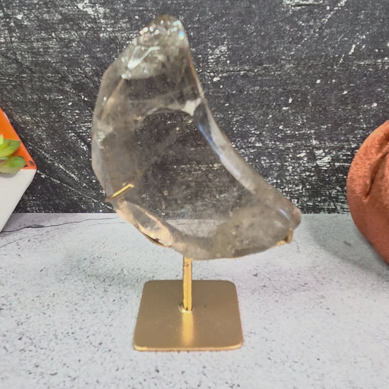 Discover the enchanting charm of the Smoky Quartz Faceted Cut Moon, a dazzling gem that captures the mysterious beauty of the night sky. Each facet reflects light like moonbeams dancing on water, adding a spark of magic to any collection. Beyond its captivating look, smoky quartz is known for grounding energy and providing calm, making this piece perfect for both style and serenity. Whether set into jewelry or as a unique display piece, let this faceted moon inspire your dreams and brighten your space with its playful glow. Illuminate your world with a touch of celestial wonder!
